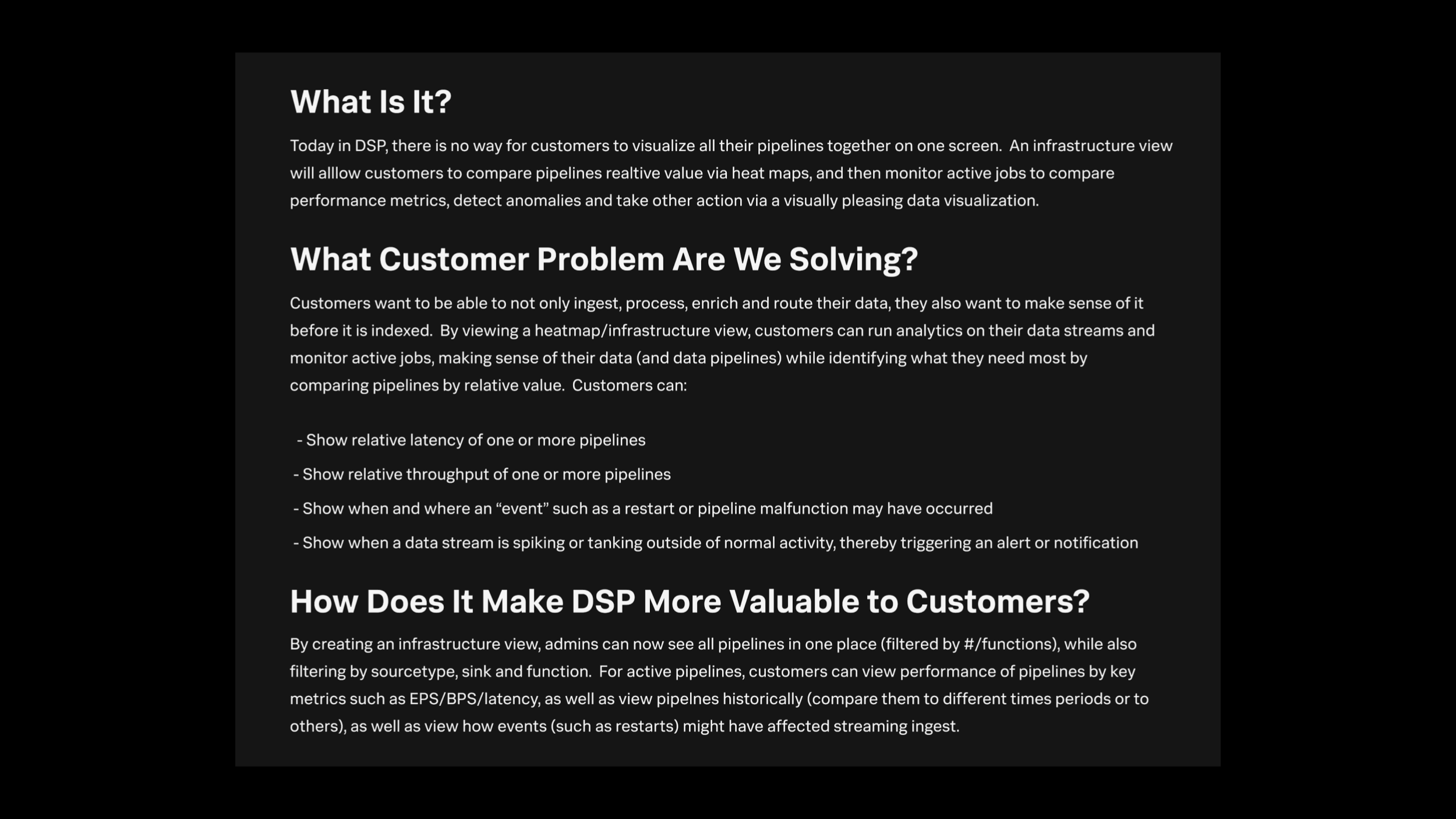At the time, there was no way for customers to visualize all of their data pipelines in one place, limiting their ability to see across the entire ecosystem. This project changed all that and put control back in the hands of users by giving them tools to make more informed decision.
